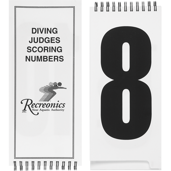 Dive flash cards are a flip-over style score card system scores 0-10 with half point increments. These dive flash cards are made from heavy-duty laminated plastic and bound together with coated wire. Dive flash cards come with printed instructions for the dive judges to reference. Dimensions: 4″ w x 9″ l